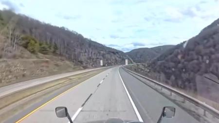 A TRUCKERS WINDSHIELD VIEW