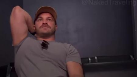 Trucker stroking in an adult theater
